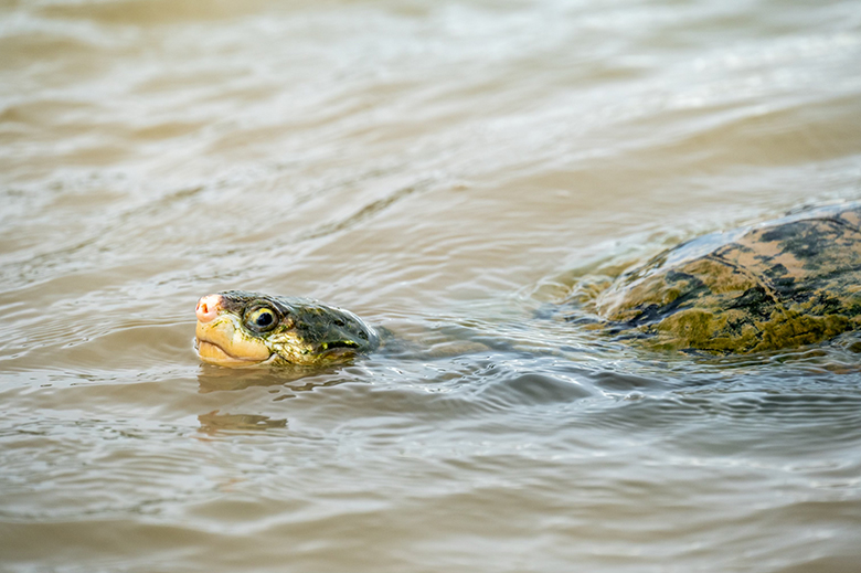 The Fitzroy River Turtle has a distinctive white ring around its eye while the White Throated Snapping Turtle is one of Australia’s largest turtle species.
